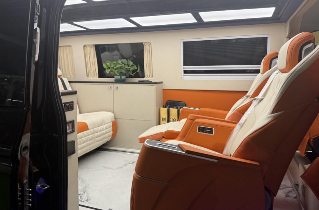 先鋒官V商務(wù)車則精準(zhǔn)捕捉了都市精英群體對于宿營車多功能性的高階需求,內(nèi)飾采用商務(wù)風(fēng)格設(shè)計,座椅與床鋪模式自由切換,巧妙融合商務(wù)接待的體面與家庭休旅的舒適,實現(xiàn)從城市街道到曠野風(fēng)景的無縫銜接。